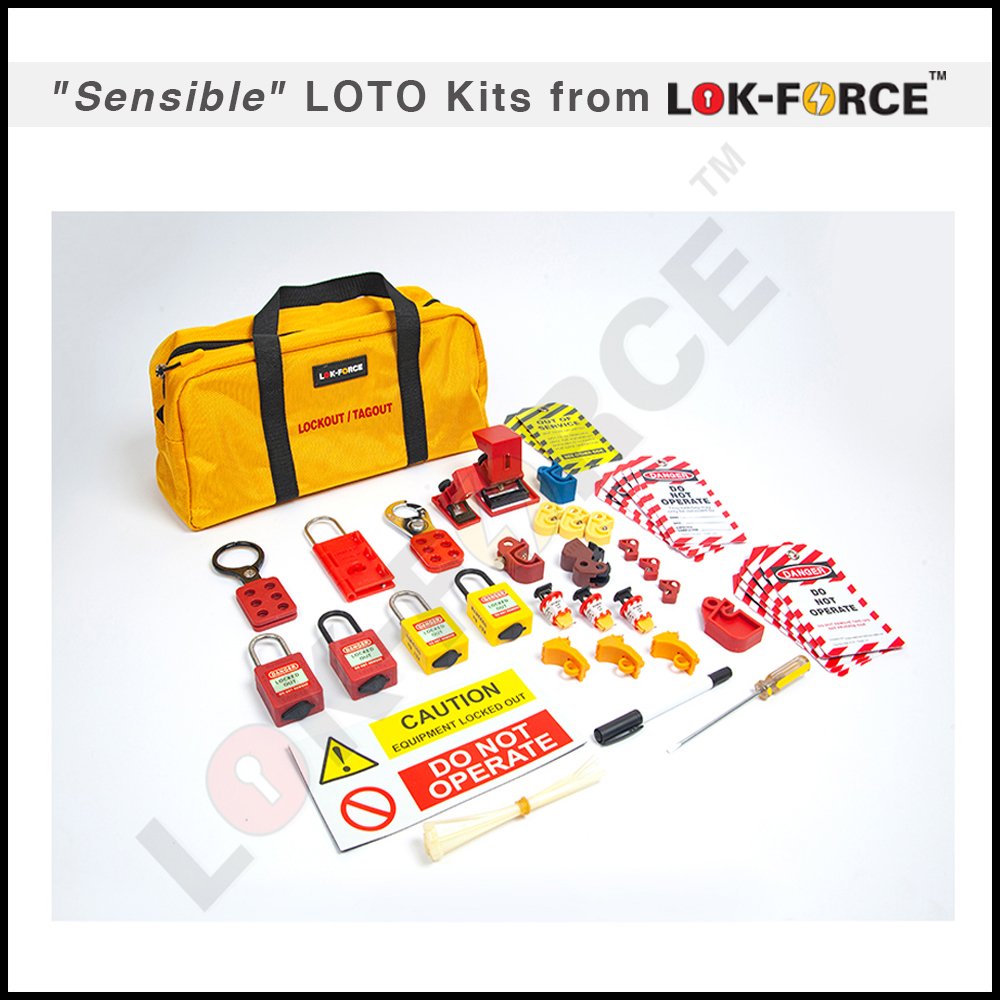 A kit for the electricians On-The-Go. A small tote bag that contains devices, padlocks, hasps and tags to lock and tag a wide range of MCBs and MCCBs to ensure proper isolation of hazardous energy.
