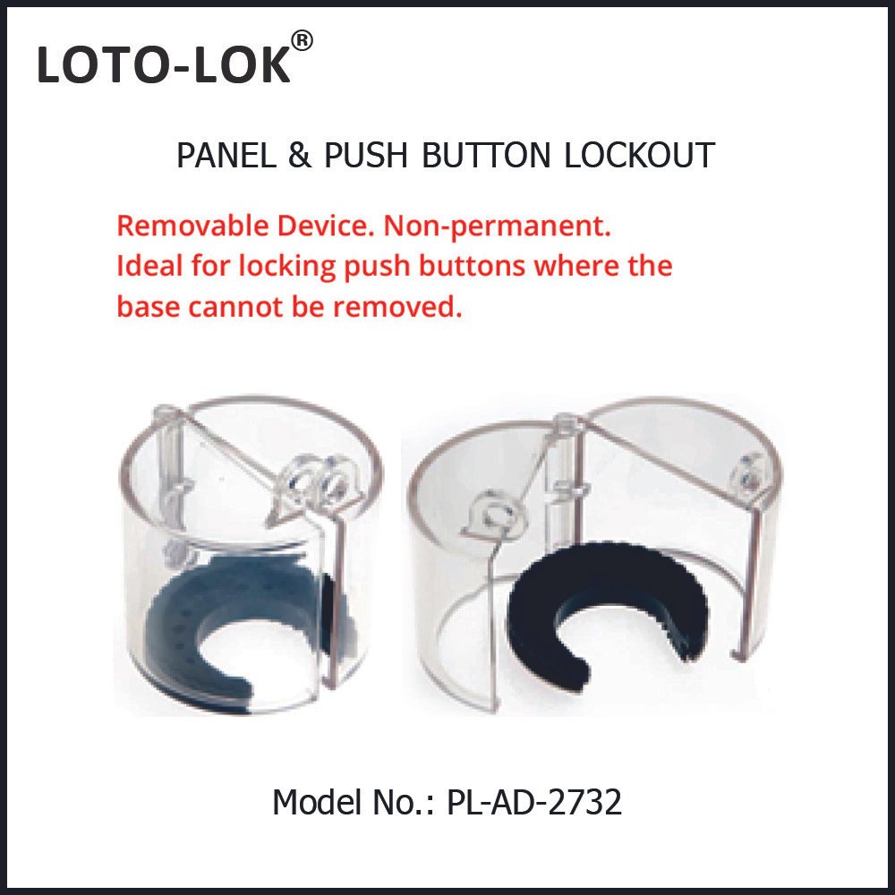 Removable Device. Non-permanent. Ideal for locking push buttons where the base cannot be removed.