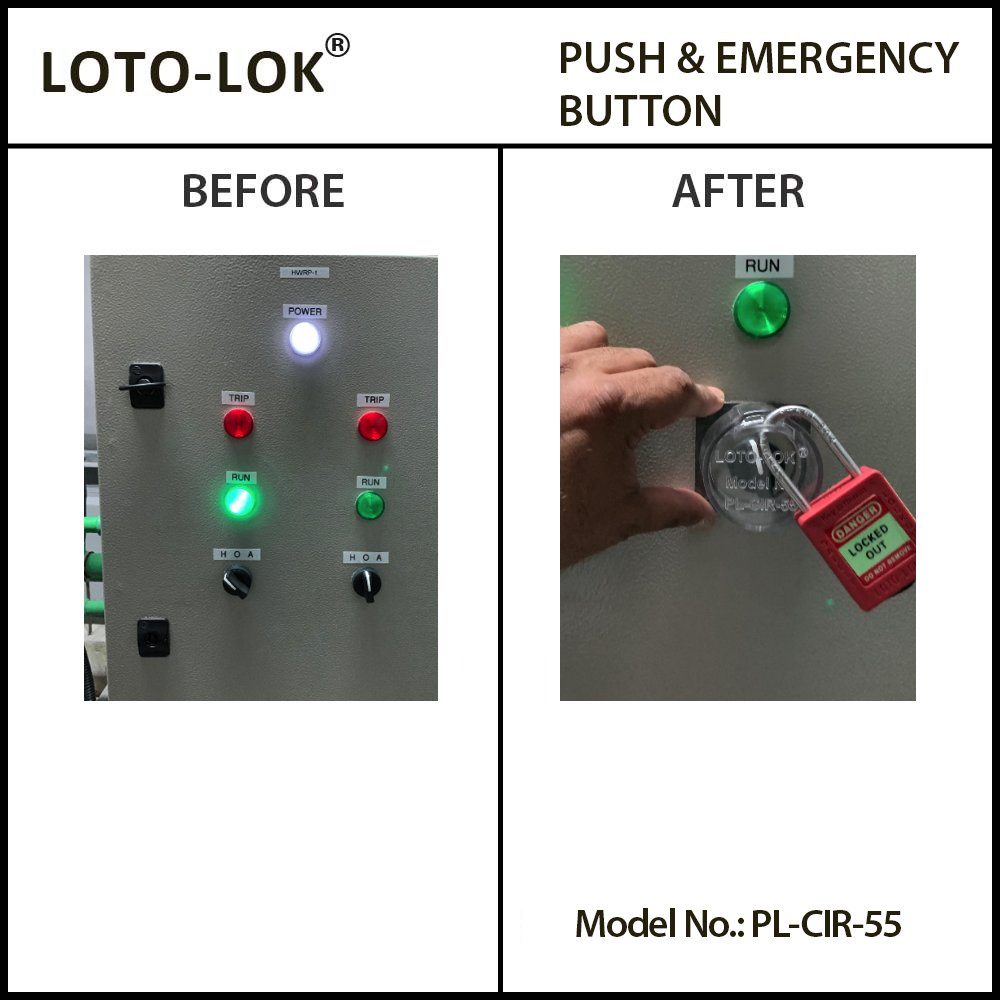 Panel Lockout – Push Button Polycarbonate material. Transparent.